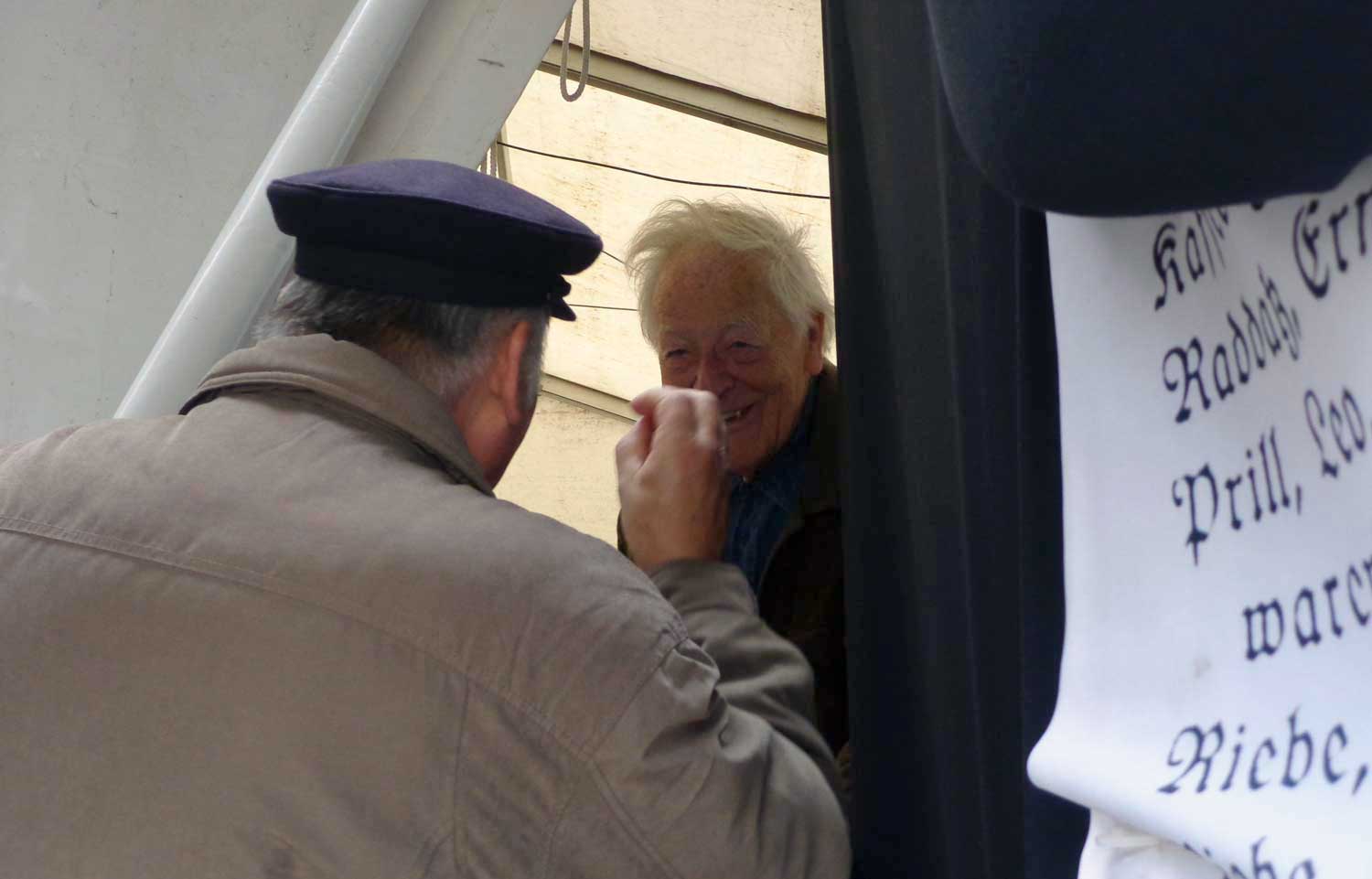 Einer kommt und ruft wieder geschafft. Er meint die Fassade nach dem Sturm. "und Sie sind der General, ja ja...ein echter Pommer" und: wo meine Pommern stehen, kommt keine Maus durch sagte Friedrich der Grosse nach der Schlacht von Zorndorf. Zwei Korn hatte er schon, fragt nach Nachschub demnächst hier.