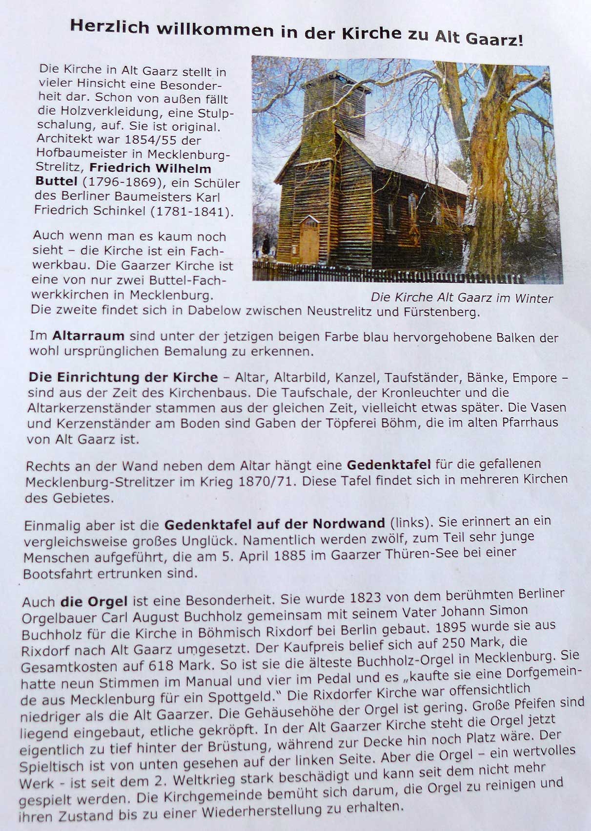 den Alt Gaarzern anbieten Töne aus N. zum Gottesdienst