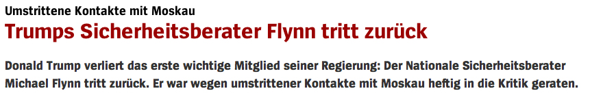 F. nahm Kontakt auf mit den Russen. Nach neuen Sanktionen. Das kam auf. Geheimdienste. Nun musste T. handeln. Bauernopfer. Russland? Wer brachte es an den Tag, warum. Jetzt. Was, wenn noch jemand anders Interesse hatte F. weg zu kriegen.... der Berater in Sachen Israels vor dem Treffen jetzt mit Israel!