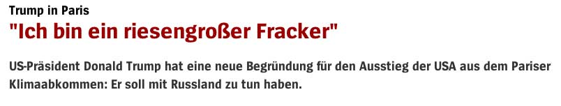 Wšrtlich sagte Trump: "Wie wirkt sich das auf Russland aus? Weil Russland sein Geld durch den Verkauf von …l macht, und wir haben unter uns mehr …l als irgendjemand, und niemand wusste davon bis vor fŸnf Jahren. Und ich will es nutzen. Und ich will nicht, dass das weggenommen wird durch das Pariser Abkommen".