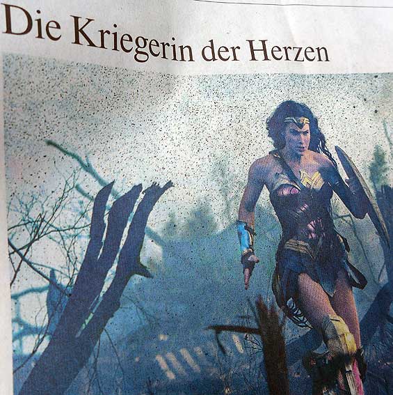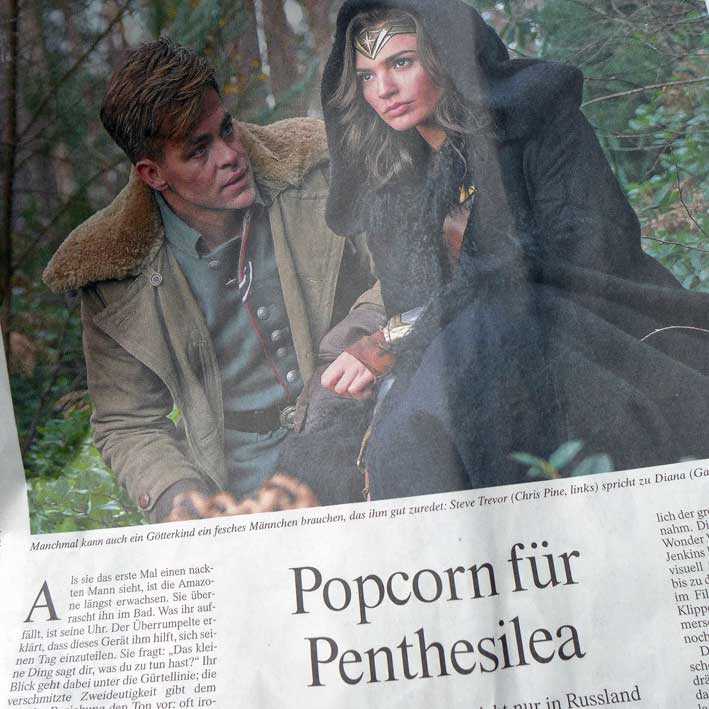 aus dem Radio: neuer Film aus Hollywood. Genre der Monsters eine israelische Soldation als Darstellerin der Penthesilea kämpfend gegen die Deutschen 1941 mit chemischen Waffen mit der Mission...