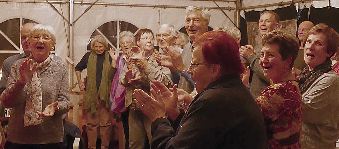 hier aber an der Ecke der Ruinen von 1945 trafen sich in dem nochmal in diesem Herbst für 2 Wochen 72 Jahre danach im noch mal installierten Cafe Zilm von damals die heutigen Bewohner für Filme und freundliche Gemeinschaft wieder. In einem neuen Film, der sie selber sind.