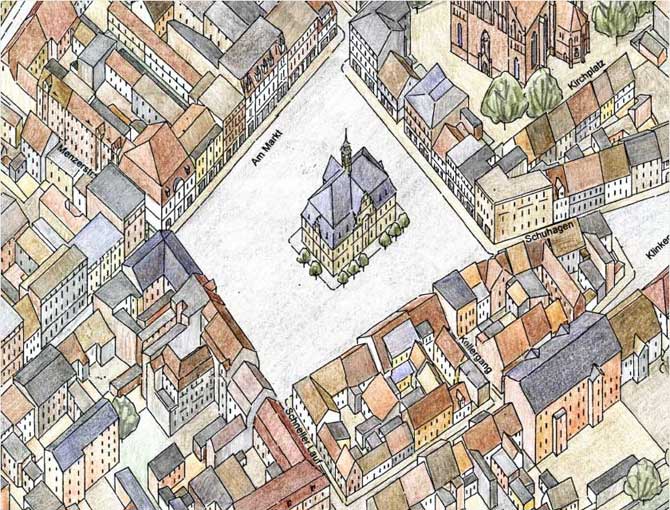 Demmin der Marktplatz nach seinen Grundrissen vor 45 imaginiert.