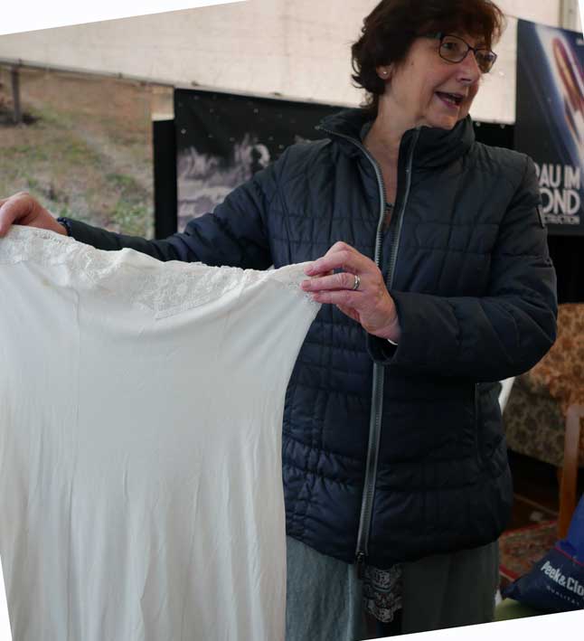 auch so eine eine Erinnerung aus der geprüften Stadt des grossen Brands, Stoffe und Kleider aus dem Kaufhaus Todenhagen, dem Schönen, werden hierher gebracht.