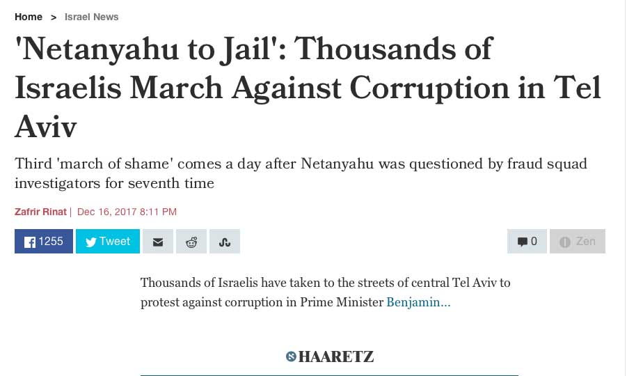 Tel Aviv (dpa). Tausende Israelis haben am Abend in Tel Aviv erneut gegen MinisterprŠsident Benjamin Netanjahu demonstriert. Sie forderten bei einem Marsch im Stadtzentrum seinen RŸcktritt wegen KorruptionsvorwŸrfen. Die Proteste fanden das dritte Wochenende in Folge statt. ãKorrupte mŸssen gehenÒ, stand auf Schildern, die Demonstranten in die Hšhe hielten. Netanjahu wird unter anderem vorgeworfen, illegal Geschenke reicher GeschŠftsleute angenommen zu haben. Netanjahu weist die VorwŸrfe als ãHexenjagdÒ zurŸck.