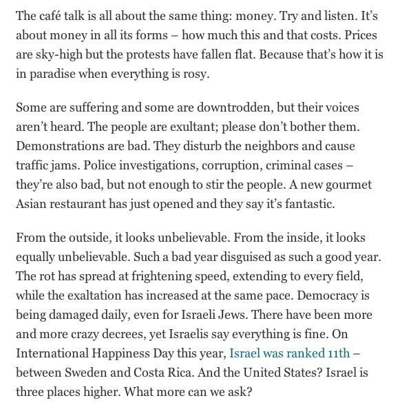 Vielleicht in letzter Analyse und in einem ganz anderen Kontext, das ist auch der einzige Weg für die Palästinenser, mit der mächtigen israelischen Wirtschaft umzugehen - nicht durch Boykottieren, sondern durch die Aneignung des Gold- und Silberhortes von Israels Wirtschaft und Technik. Und vielleicht machen sie das auf jeden Fall.