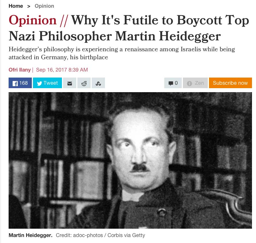 Wir sind also auf dem Höhepunkt einer Welle von Interesse in Heideggers Philosophie in der Welt der hebräischen Bücher. Die Verantwortlichen für die Übersetzungen sind vor allem Mitglieder einer jüngeren Generation israelischer Gelehrter, von denen viele in Berlin leben. Aber in Deutschland, dem Geburtsort des Philosophen, ist sein Denken heute noch beispiellos harten Angriff. Heidegger gilt seit langem als eine ethisch zweifelhafte Figur, weil er sich 1933 begeistert der Nazipartei angeschlossen hat.