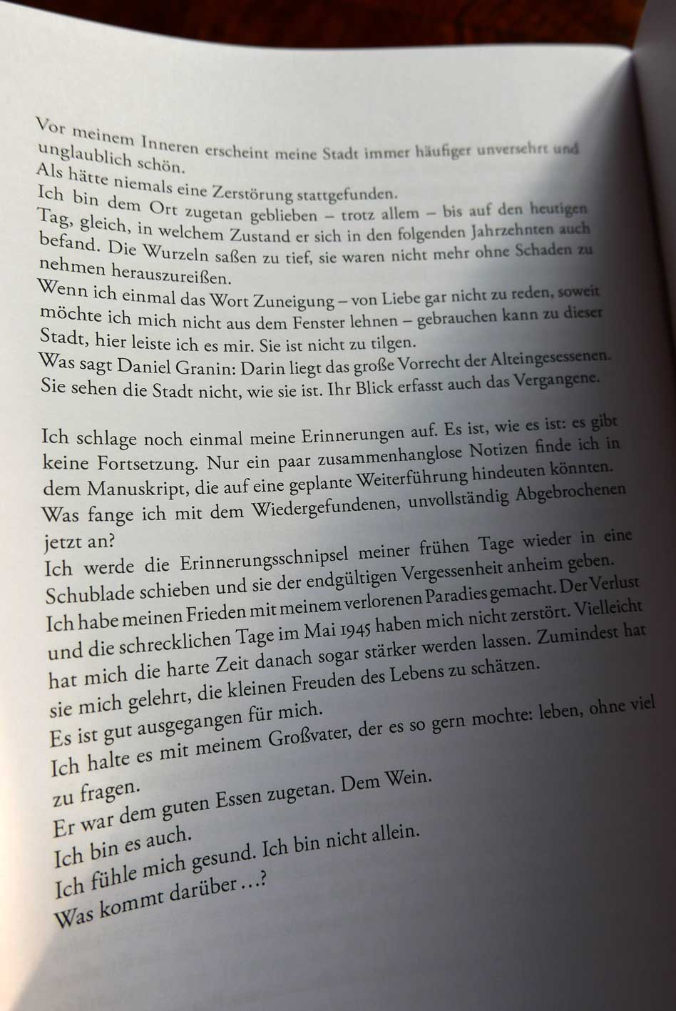 Das Buch, auf das wir alle gewartet haben ist nun entstanden. Wer durch die Strassen geht dieser Stadt, sieht sie plötzlich wieder im Echo dieser Erinnerungen durstig nach Leben. In und aus uns.