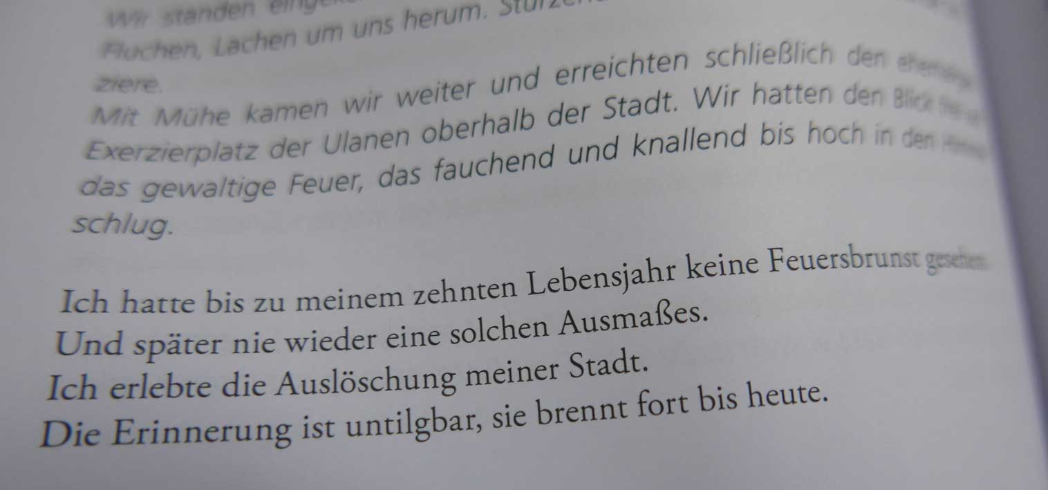 Eine Chronik danach sollte noch kommen zu ergänzen. Warum es kommen konnte, was heute aus Demmin wurde. Sie sagen bunt für den Tag als einen Welt unterging. Feuer solchen Ausmasses gab es schon früher, mit Toten einer zusammenbrechenden Welt. Was sie ehrt. Aber wie kann es sein, dass 7o Jahre danach junge Leute Plastikpuppen an ihre Stelle als ihr Sexobjekte des Hohns ins Wassen schmeissen , ohne dass die Richter des Landes nach denen suchen, die das tun, und dass es andere unter uns fördern und decken. Solange es immer noch Zuegen gibt, dies hier schreiben können. Und müssen. Nun ist das Buch geschrieben und raus - was für ein Geschenk. Der Stadt und uns alllen, danke.