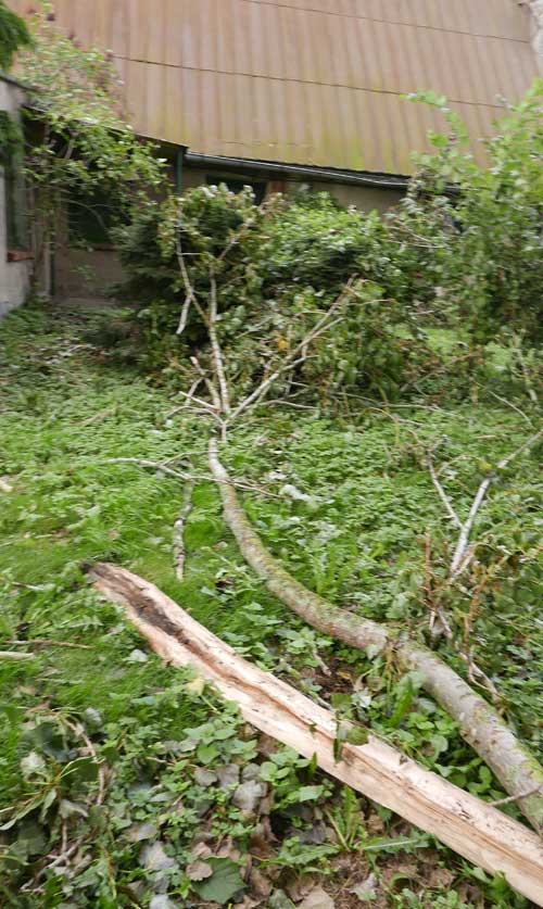 der Baumfreund kommt an seine Grenzen und der freundliche Nachbar hinter der seinen am Zaun wird handeln müssen. Sonst wird es für ihn teurer.