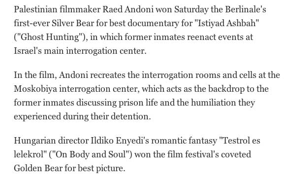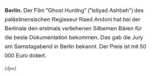 nun aber der Preis der Filmfestspiele Berlin von dem niemand sprach,in keiner der unsver trauten Zeitung im Internet, wenn nicht Haaretz uns geleitet hätte zu dpa und dem Region. TV. Und es ist der Film, der sie alle rettet. Die das hier machen. Wenn sie immer von Politik und Publikum sprechen, den Menschen des Rechts.