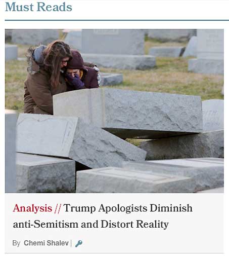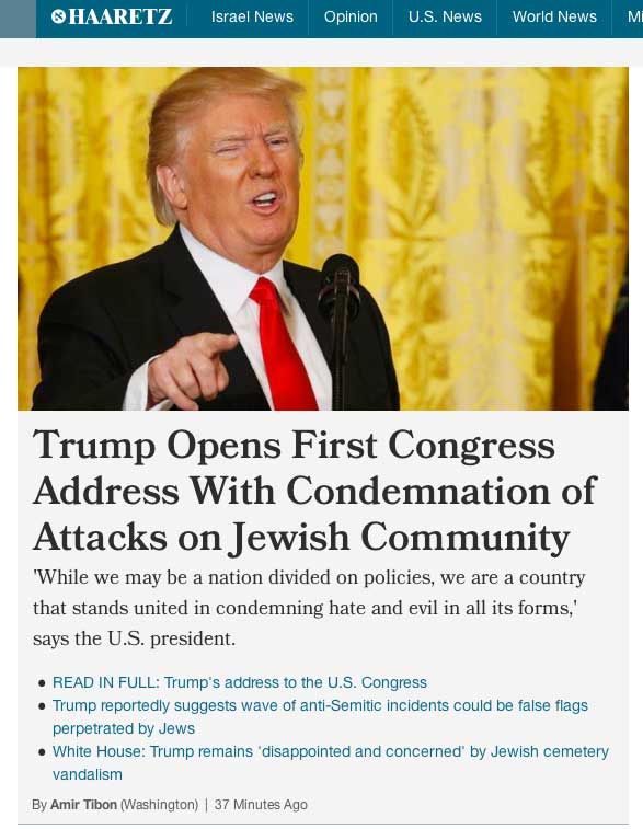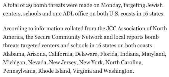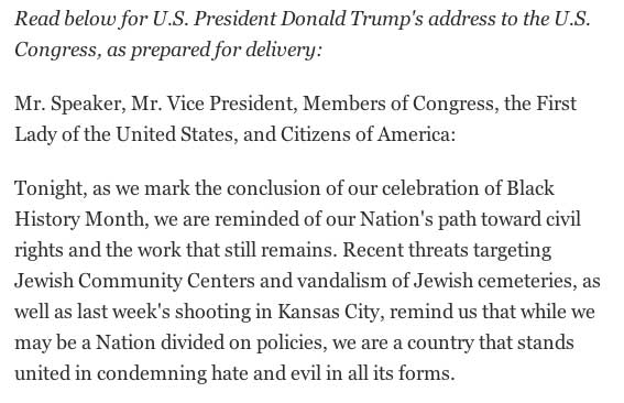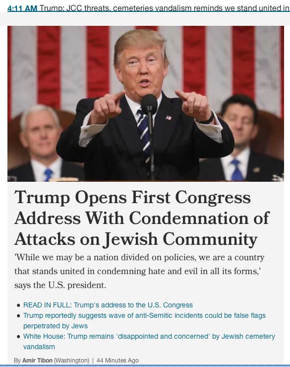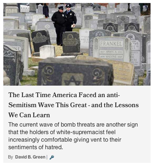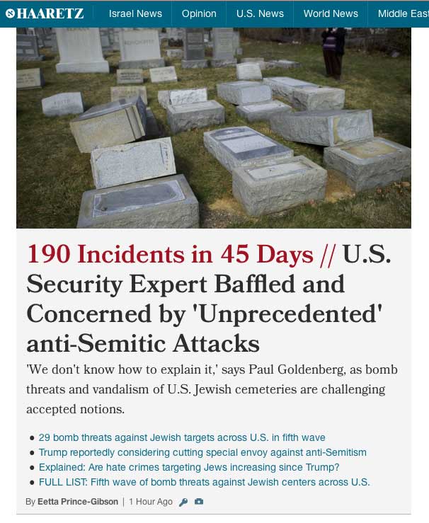 Let me begin by noting that in the last several months, since Donald Trump’s victory in the presidential race, there has been a significant outbreak of anti-Semitism here in our country. I am very alarmed by the desecration of Jewish cemeteries, with Jewish Community Centers being threatened around the country, and with the headquarters of the Anti-Defamation League receiving a bomb threat last week.