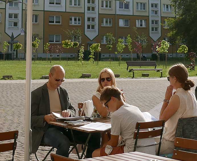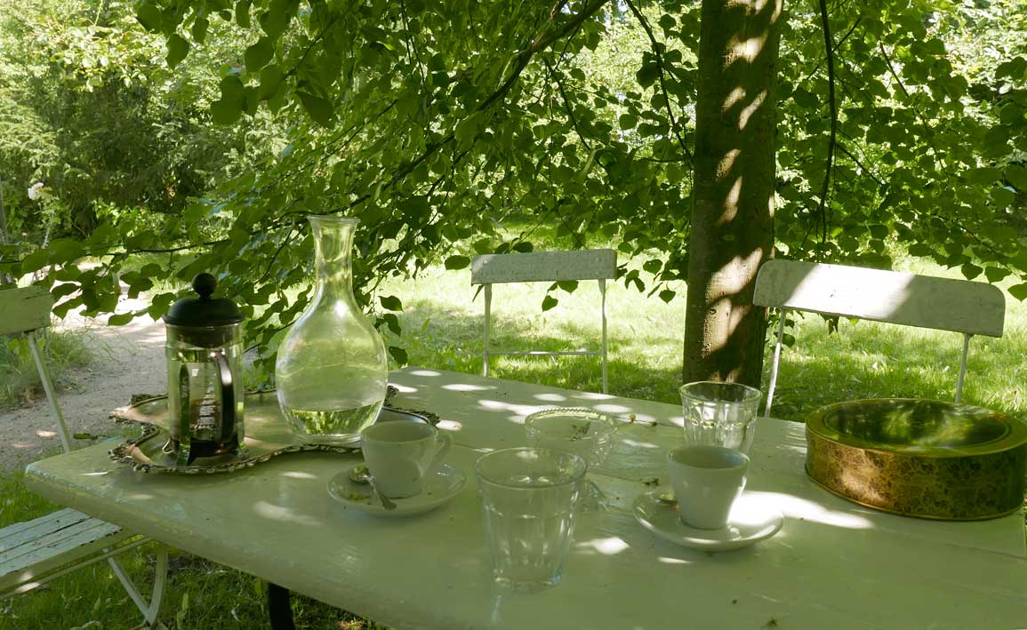 und am Morgen in kühlendem Schatten eben noch doe Pläne und schon gehts in die Welt