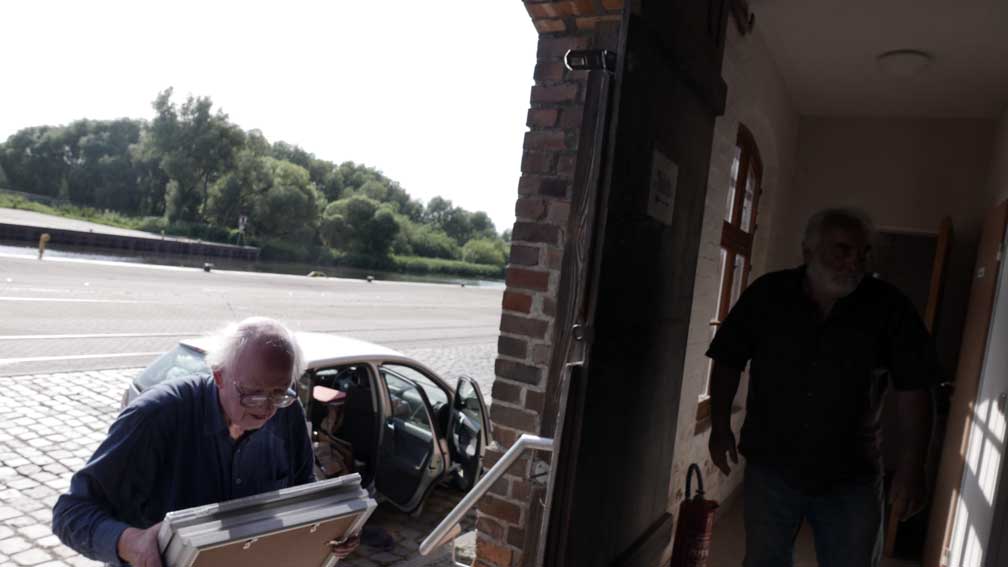 mit den Bildern der Freundes. Bildern als Eernte seines Lebens von Stast zu Stadt nun in Demmin