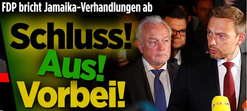 wärend im Saal die Verhandlungspartner an den Bildschirmen mit einem Einigungspapier in der Hand sitzen, verkündet Chr. L. /FDP draussen den Abbruch der Verhandlungen.