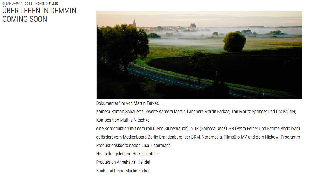 dieser Film zu Demmin, demnächst uraufgeführt in Leipzig zu den Dokumentarfilmfestspielen, ist ein lähmendes Zeugnis der Stadt. Wenn es gelingt, wir sein Urheber Herr Farkas uns hier einiges dazu zeigen.