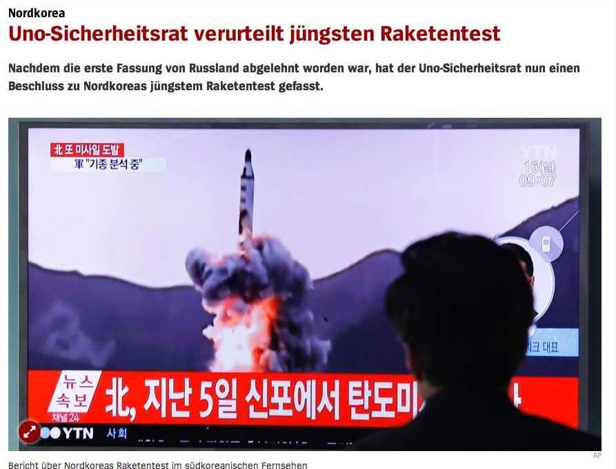 Der neue Beschluss wurde der Beschluss von den 15 Mitgliedern des Gremiums einstimmig gefasst. Das Verhalten der nordkoreanischen FŸhrung sei "destabilisierend", hei§t es darin. Durch die "illegalen AktivitŠten" Nordkoreas beim Test von Raketen und Atomwaffen wŸrden "die Spannungen in der Region und darŸber hinaus erheblich verstŠrkt".