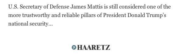 Der Verteidigungsminister Mattis war bisher als einer der vertrauswürdigsten Pfeiler in Trumps Sicherheitsrat..."