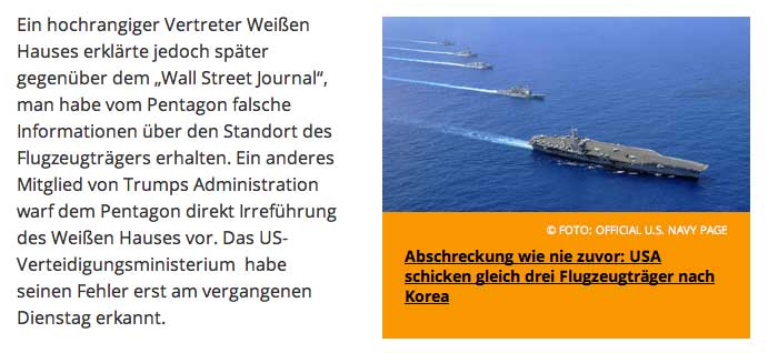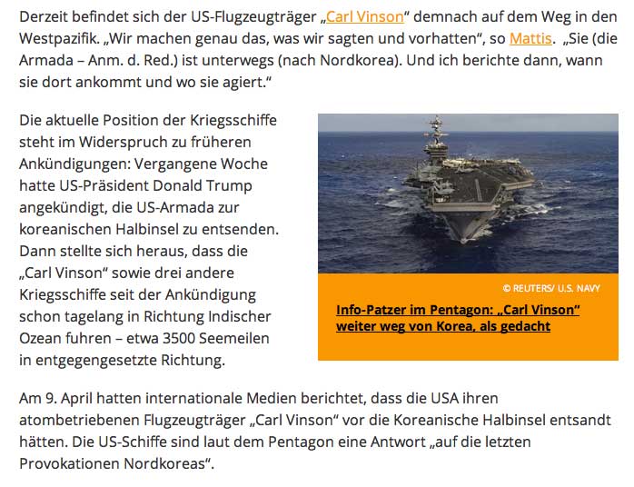 "Die erschreckende Komödie Trumps und die verlorene Armada in Nord Korea.