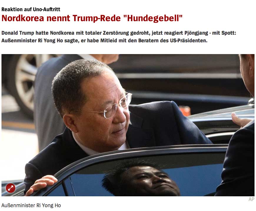 Nordkoreas Machthaber spuckt erneut große Worte. Als Reaktion auf Donald Trumps jüngste Rede sagte Kim Jong Un: "Ich werde den geistig umnachteten senilen Amerikaner endgültig mit Feuer bändigen" -