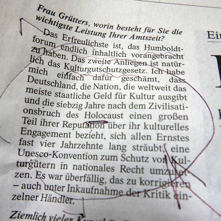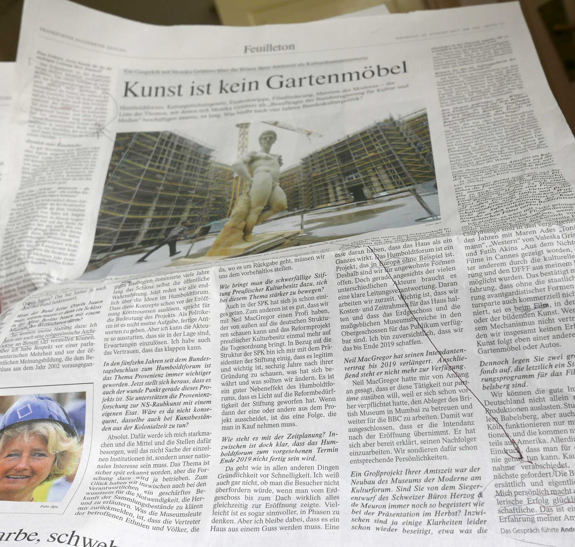 Als sie merkten, dass das nicht gutging, nahmen sie einen aus London, der sich mit deutscher Geschichte bewährt hatte, aber eben einen aus einem Land mit aussereuropischen Geschichte, so dass diese Kolonien ihnen jetzt durch die Gegenständen als Trophäen früherer Okkupationen im Nacken sitzen.