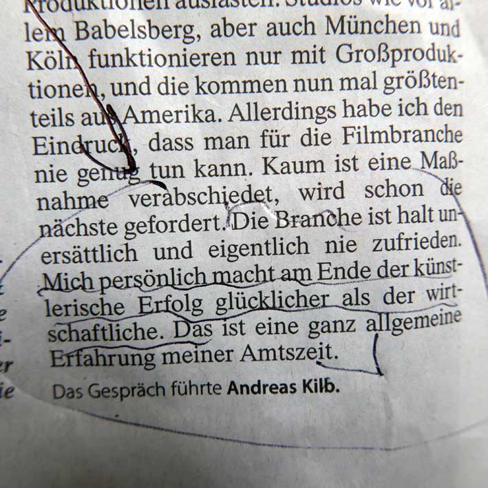 Solange sie diesen Inhalt ihrer endlich angenommenen Geschichte wieder nicht suchen, werden sie keine Ruhe finden auch für das Äussere. Und nur aus der Form gewordenen Gegenwart kann die Antwort kommen. Selbst historische Kunst würde eine neue Darstellung finden müssen in neuen Techniken und im Geist der Zeit. Und ihrer politischen Produktivität. Und die liegt in der Aktzeptanz dessen, was getan werden muss.