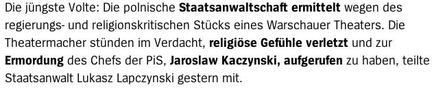 Mit der Freiheit der Kunst und dem Recht zum anders denken ist es in Polen nicht mehr weit her