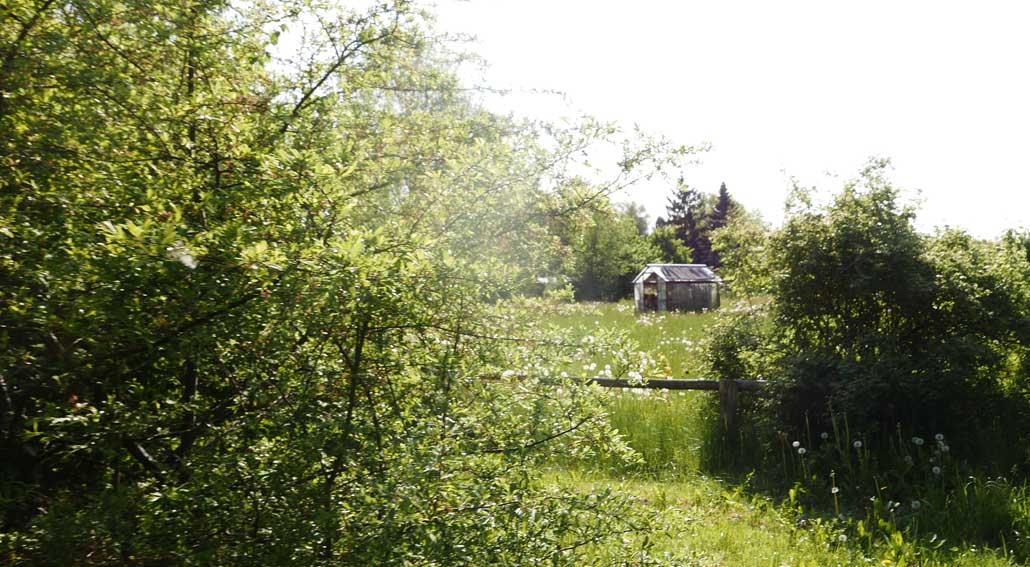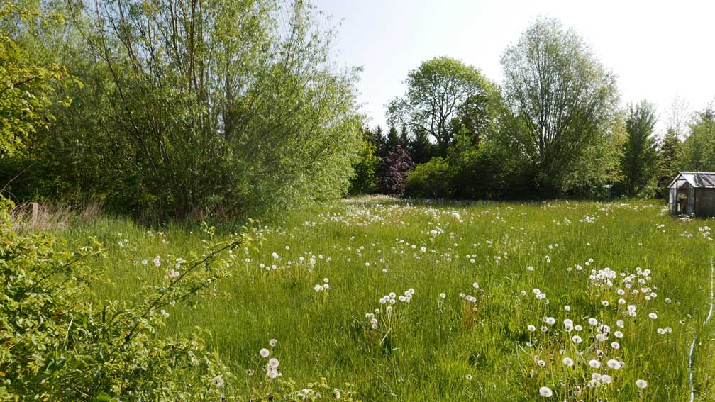 der morgenliche Weg aber im Tau durch die Wiese vor der ersten Mahd nach der Blühte des Löwenzahns, barfuss noch und im Morgenmantel gehört zu den Ritualen des Tages erster nach draussen. Zu schauen ob alles in Ordnuung, die Tür, ob alle Matten zum Schutz gegen das Licht die Nacht überlebten. und ob Wasser gebraucht wird für den Tag der Sonne dann.