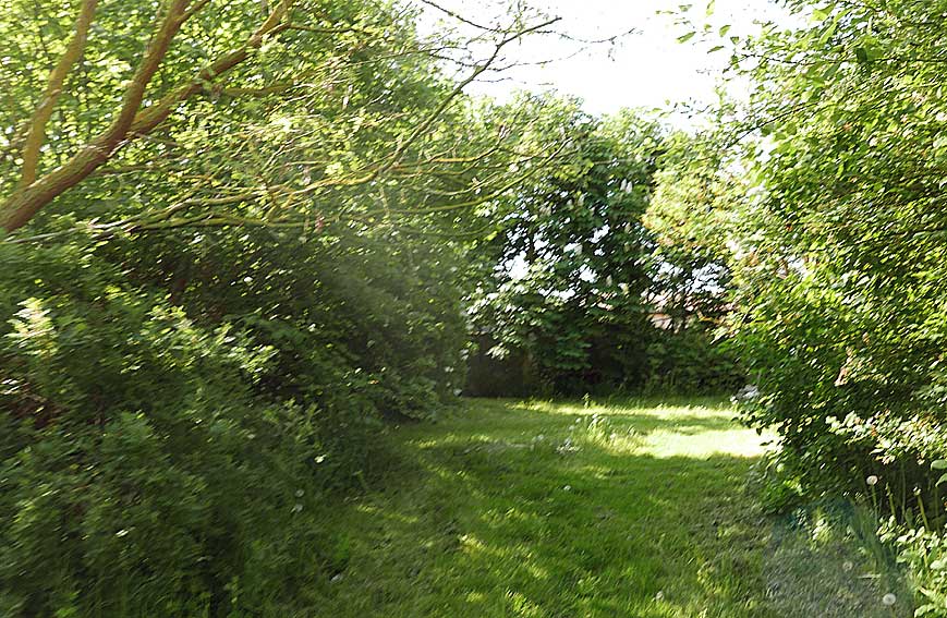 dahinter die neuen Bäume an der Stelle des früheren Grabens, des eiszeitlichen, nun verrohrt. D.h. unter der Erde läuft des Rohr der LPG.