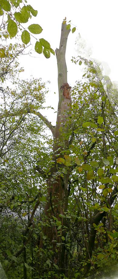 im eigenen Bezirk. Eine Ulme der 3 -Ulmen Sterben- nach Wind und Wetter, nun schon über 10 Jahre den Vögeln lieb selbst als Gerippe, kommt langsam runter .