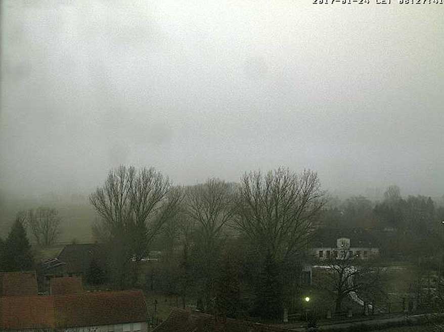 und der selbe Hof mit Kirche müssten nun die Sonne, das Licht von hinten haben. Aber ohne Sonne gleichen sich Abend und Morgen.