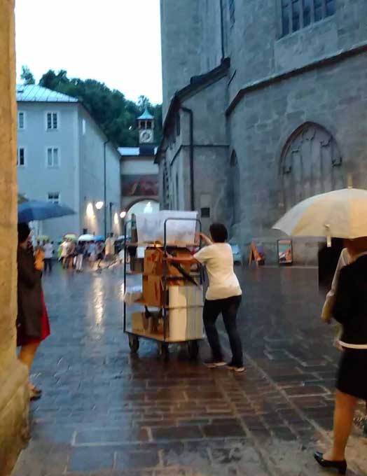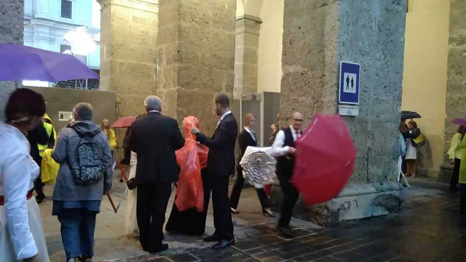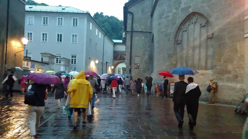 der Jedermann in Salzburg fiel ins Wasser und musste um ziehen von der Domfassade ins Theater - und was das so heisst, aber....