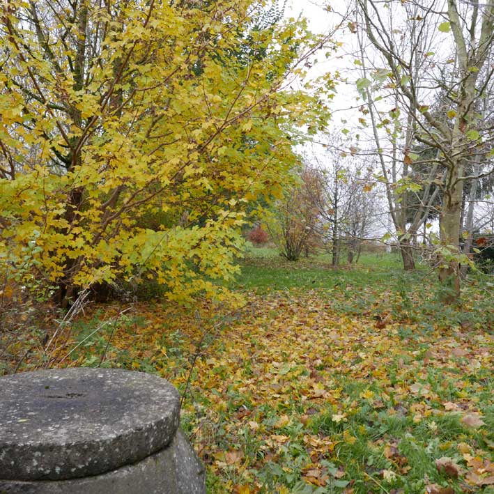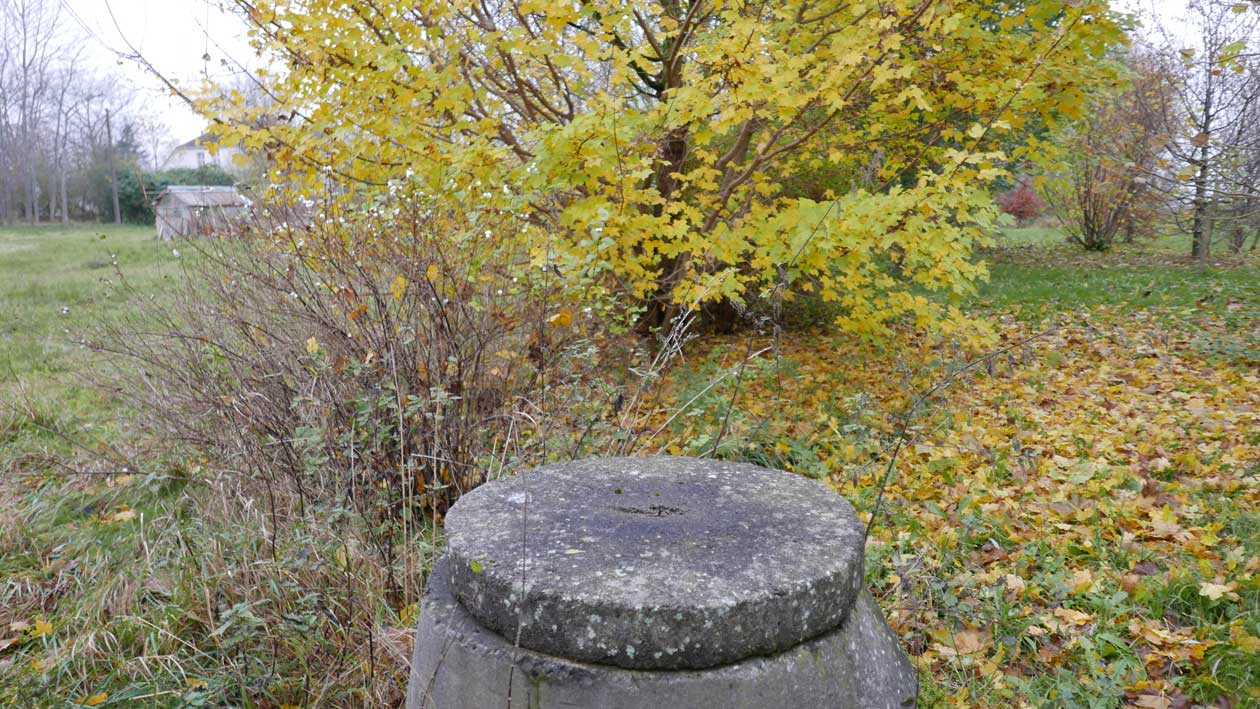 Wie graue Fossilien darin die Beton-Reste zum Abstieg in das versiegende Nass, was früher ein Graben in Hecken und Bäumen war, und nun ein Rohr ist, ohne gibftiges Abwasser der Landwirtschaft, das inzwischen verboten ist oder in einer Ringleitung aufgefangen.