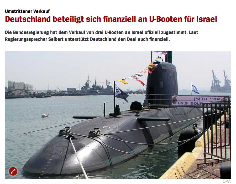 ... Rüstung für Israel Bundesregierung genehmigt U-Boot-Deal ... Sie will ein Drittel der Kosten in Höhe von rund 1,5 Milliarden Euro übernehmen ...