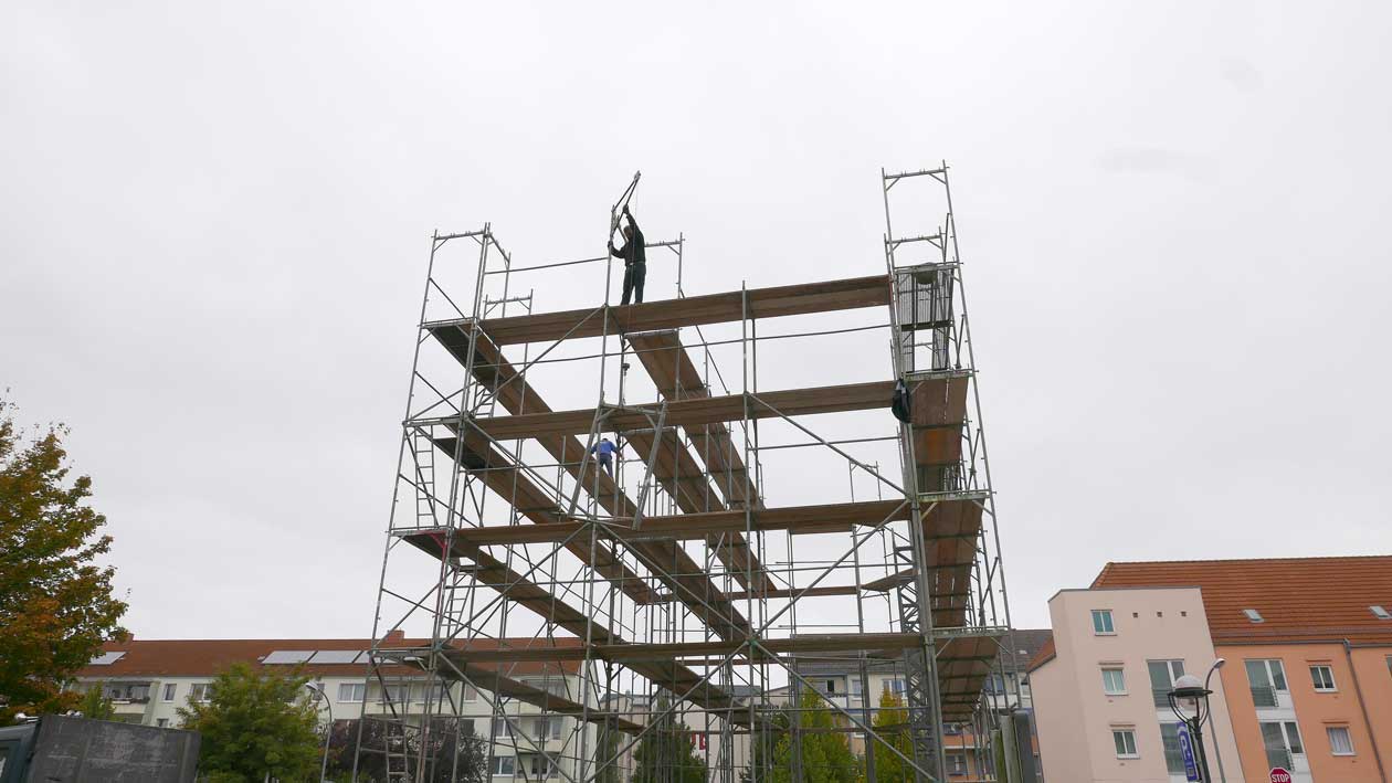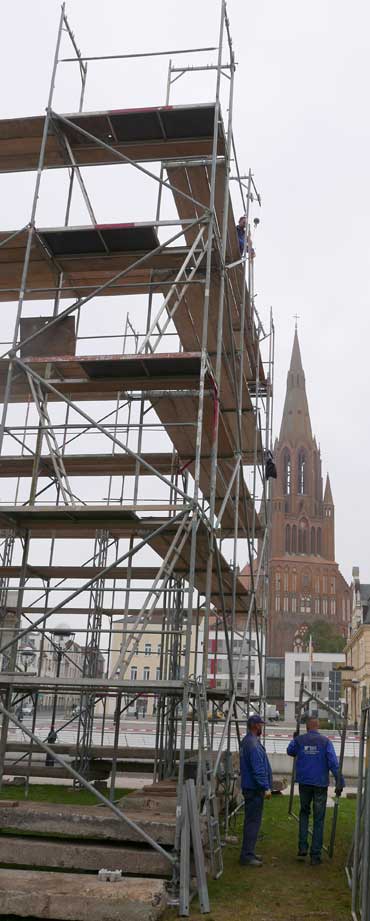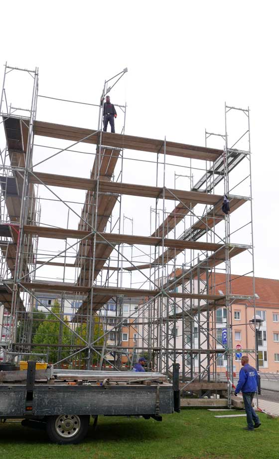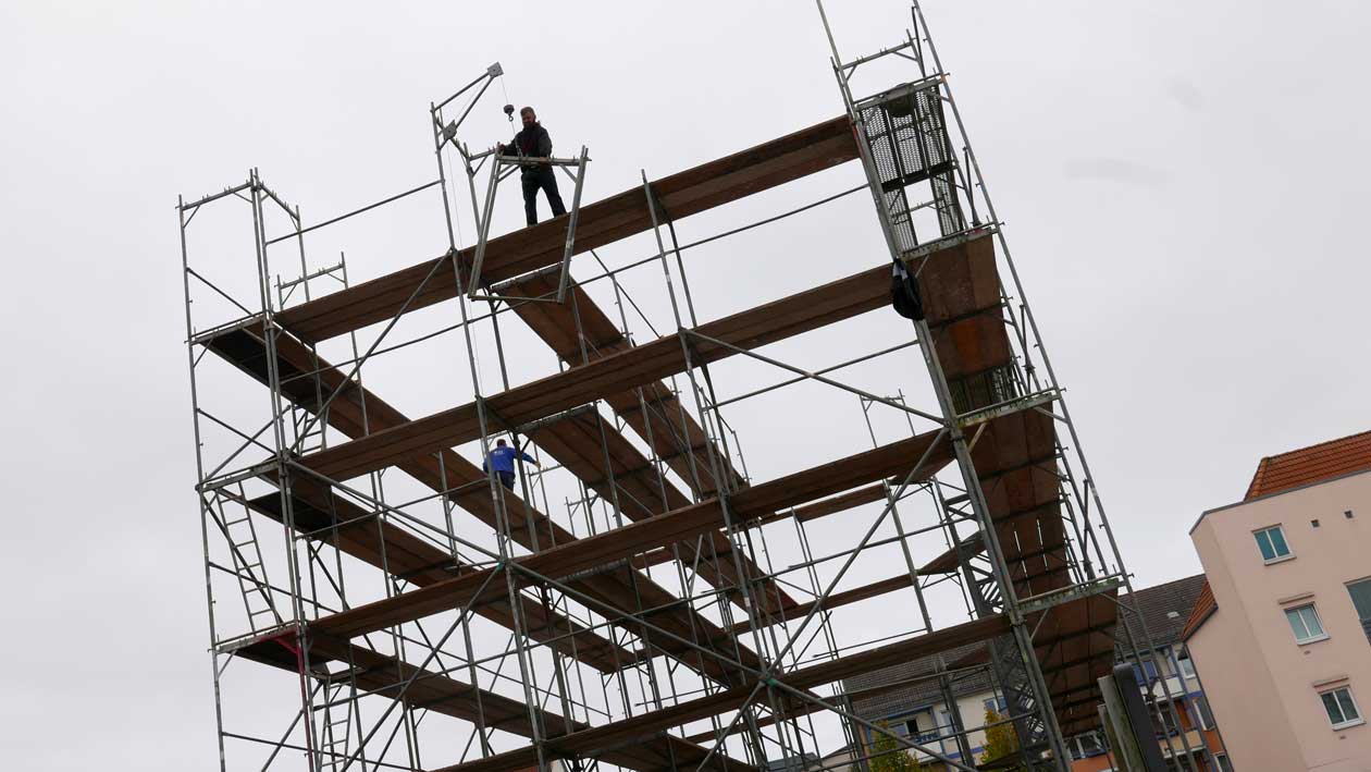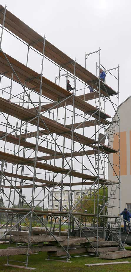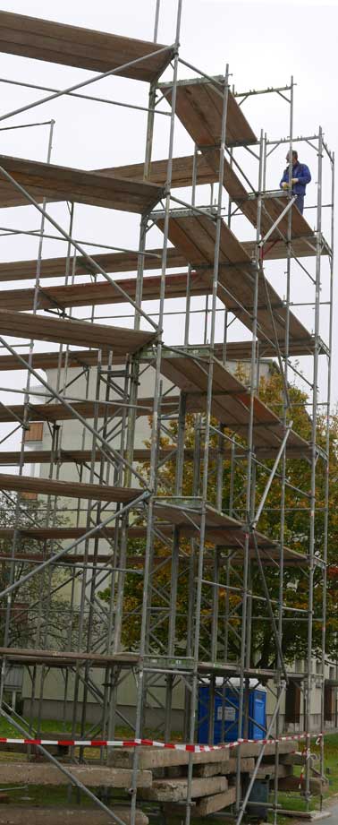 seit einer Wochen bauen wir, dann mit Stopp in die Höhe , die Fundamente gesichert, seit gestern weiter nach oben.