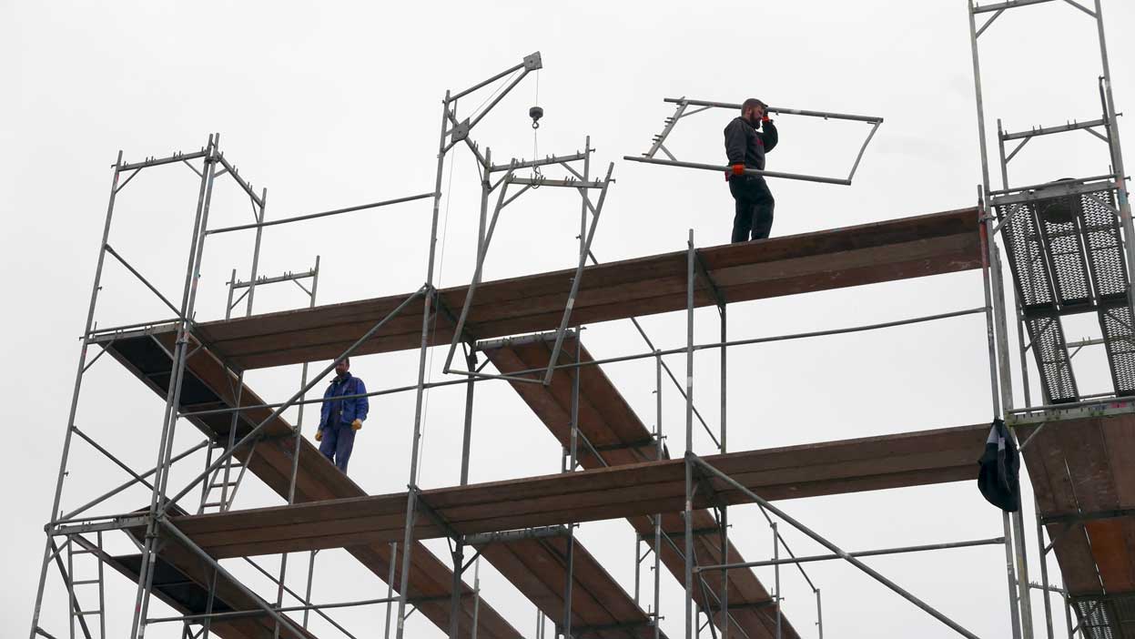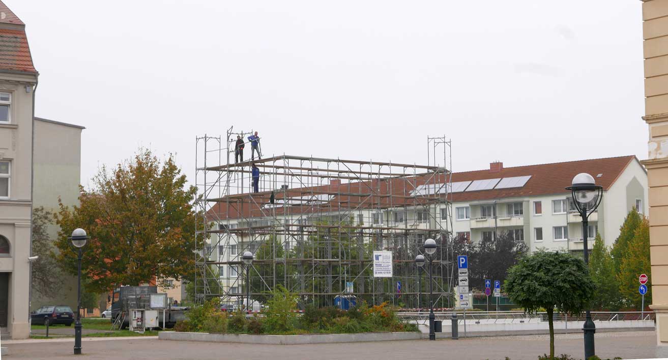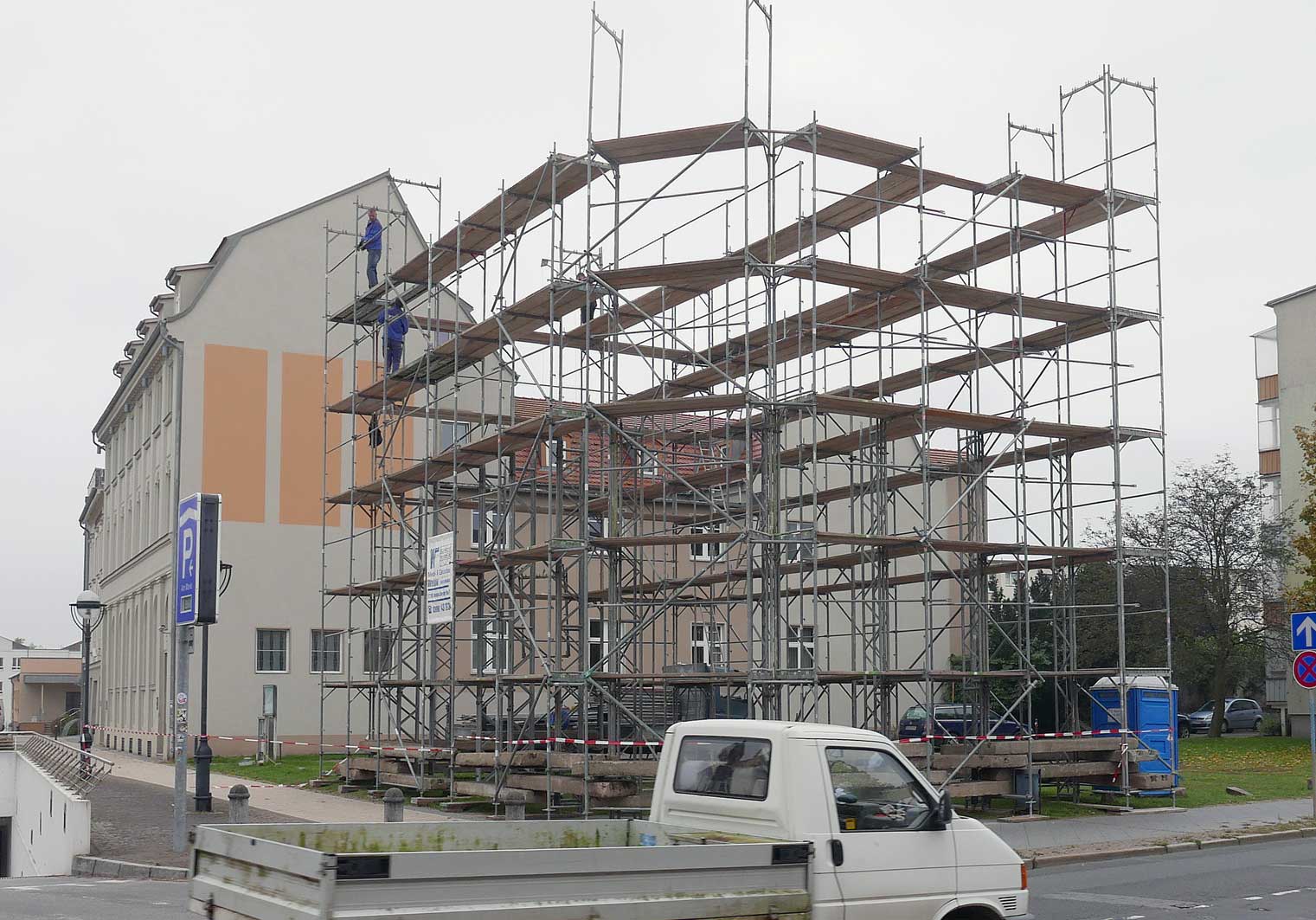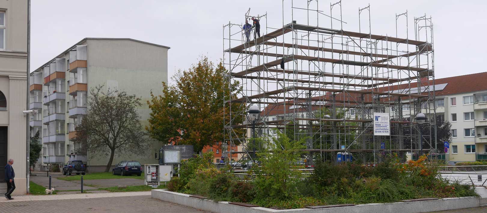 seit einer Wochen bauen wir, dann mit Stopp in die Höhe , die Fundamente gesichert, seit gestern weiter nach oben.