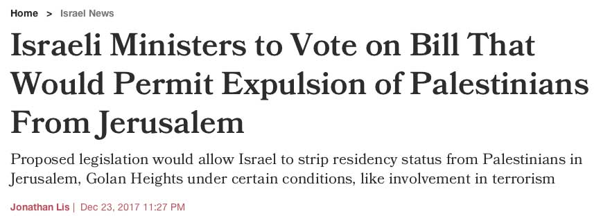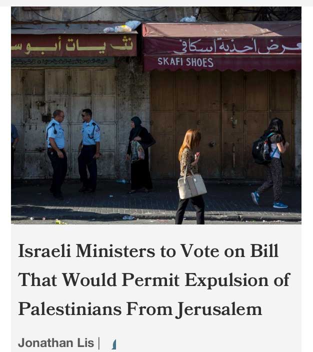 ein Gestz ist in Vorbereitung, dass die Àusbürgerung der Palästinensen aus Jerusalem erlauben würden. Aus Sicherheitsgründen.