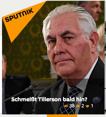 Laut den Quellen hat Tillerson bei Gesprächen mit nahen Freunden gesagt, dass er sein Amt bis Ende des Jahres niederlegen könne, weil er von seiner Arbeit als US-Außenminister sehr enttäuscht sei