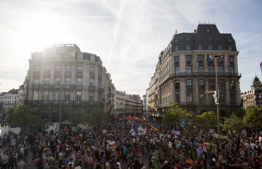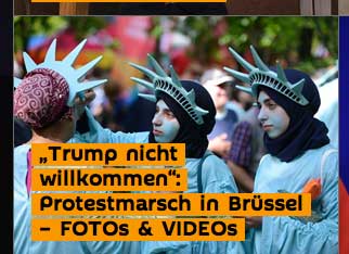 Die Demonstranten blieben in sicherer Entfernung zum streng abgeschirmten Kšnigspalast. Einige Trump-Gegner liefen als Freiheitsstatuen verkleidet mit. Auf Schildern hie§ es etwa "Make racists afraid again" ("Lehrt Rassisten wieder das FŸrchten") - ein Konter auf Trumps Wahlspruch "Make America great again". Aber der Protestzug richtete sich auch allgemein gegen den Nato-Gipfel.