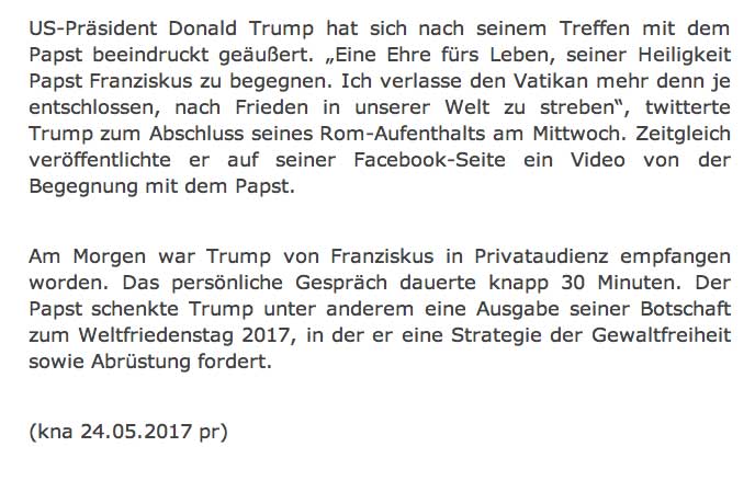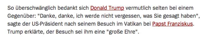Trump verzichtet bei seinem Besuch in BrŸssel auf den dort eigentlich Ÿblichen Auftritt vor Journalisten. Das sei so mit der amerikanischen Seite vereinbart worden, sagte ein hochrangiger EU-Beamter. Auch bei den vorigen Stationen der Reise des US-PrŠsidenten in Saudi-Arabien, Israel und Europa gab es keine Pressekonferenzen, aber doch šffentliche Reden Trumps.