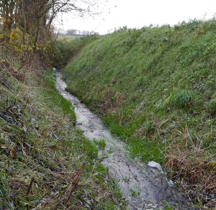 und so auch ist der Graben vor dem Rohr in Nossendorf voll Wasser wie nie in letzter Zeit