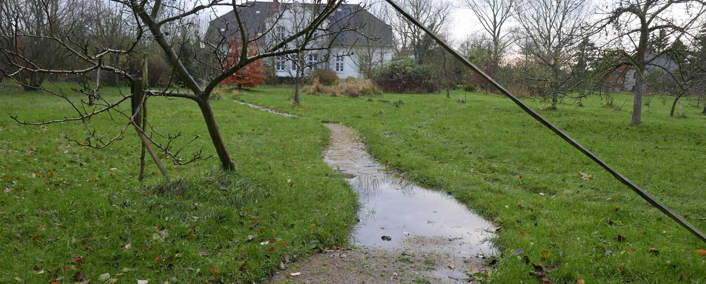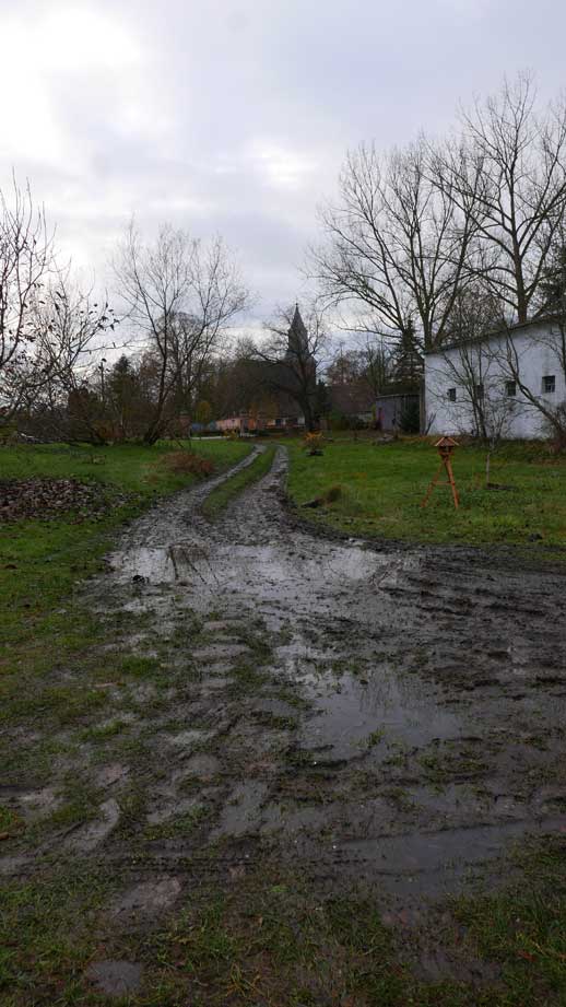 Aber das Wasser steht hoch in den Wiesen ohne Graben auf dem Syberberg'schen Abschnitt von Park und Koppeln soweit das Rohr reicht. Weil es nicht abfliessen kann. Und keiner hilft.