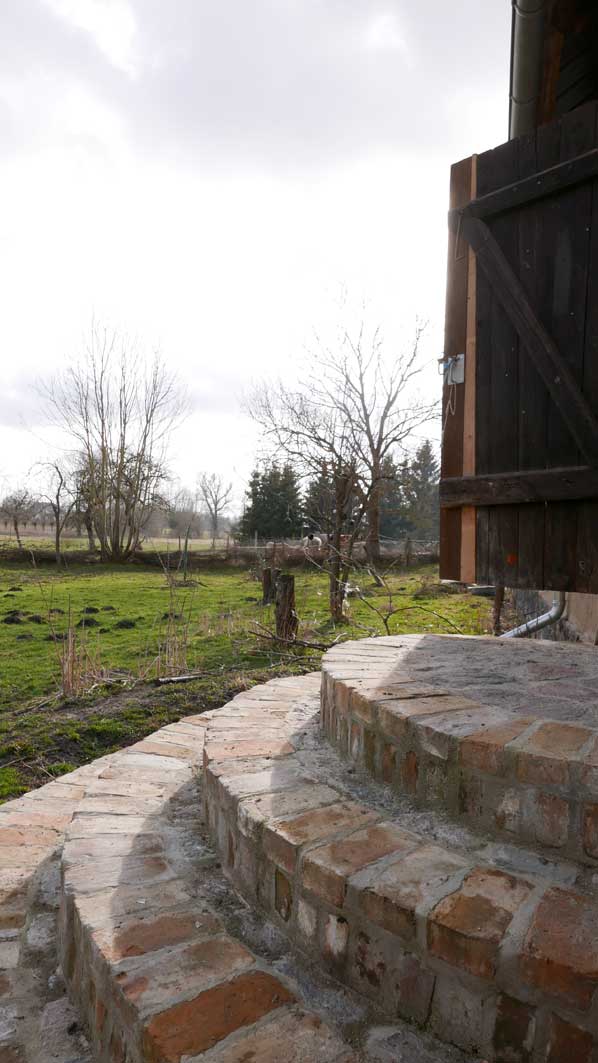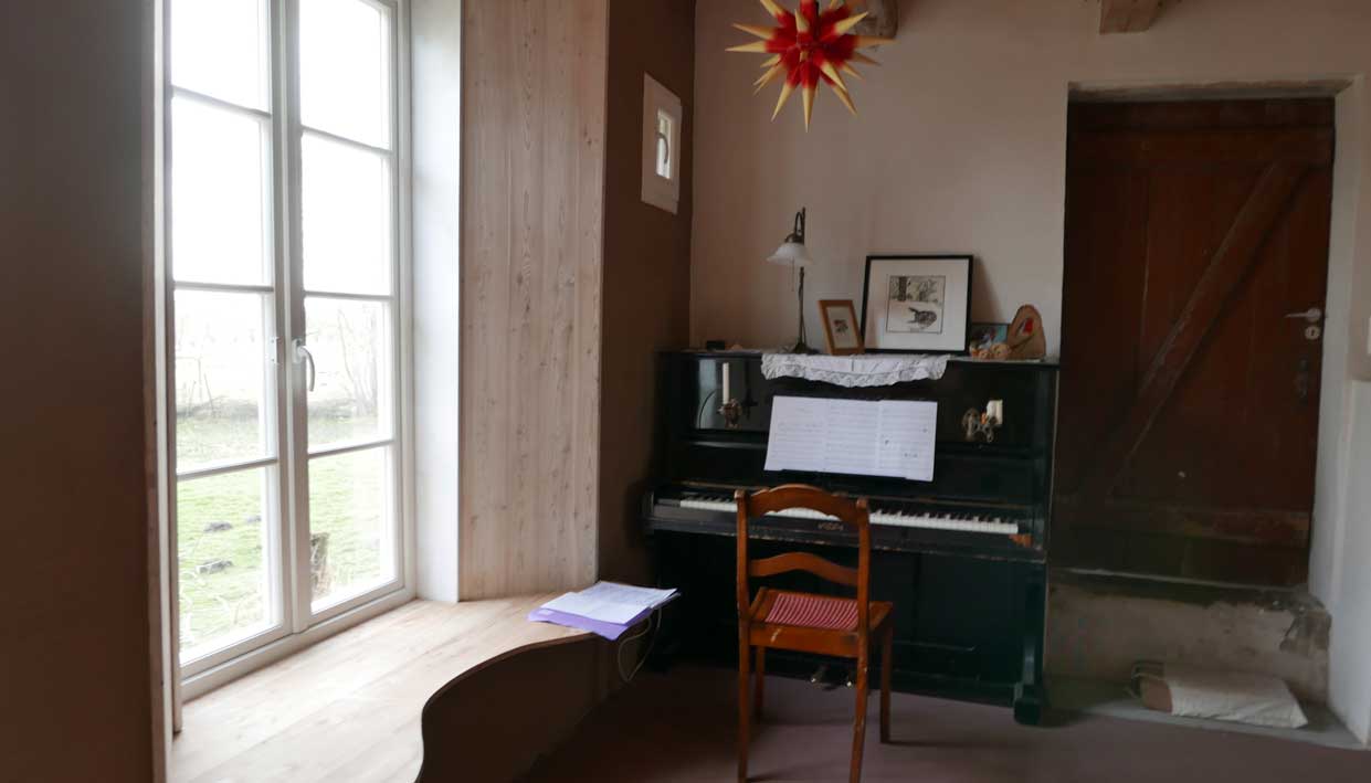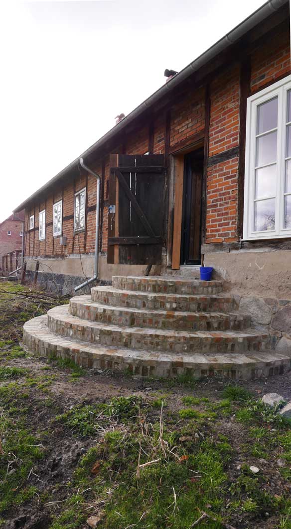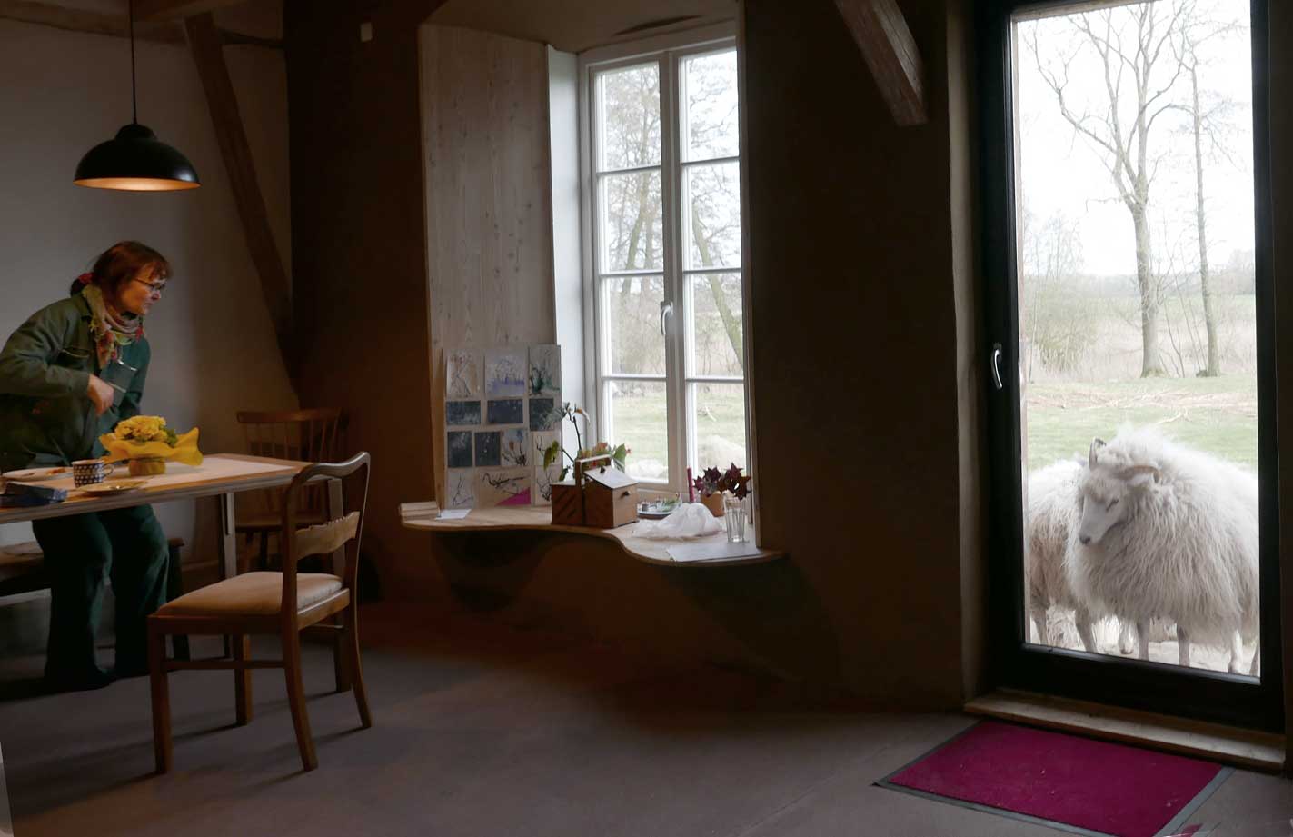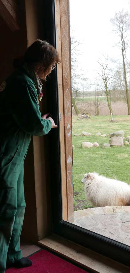 sie belehrt die Leute nicht, die zu ihr kommen, eher führt, leitet zu sich. An den Dingen, Farben. Nach den neuen Erefahrungen nun am Haus selbst.