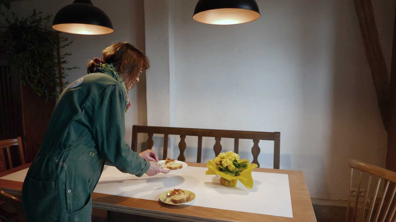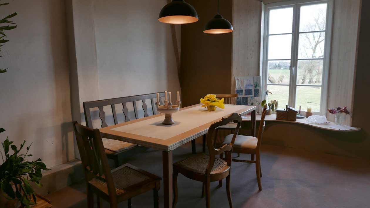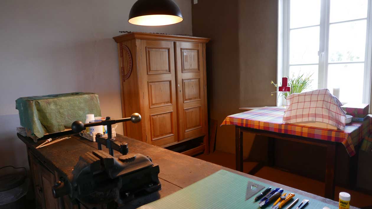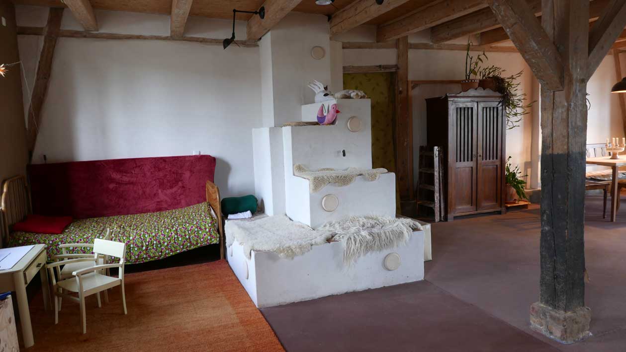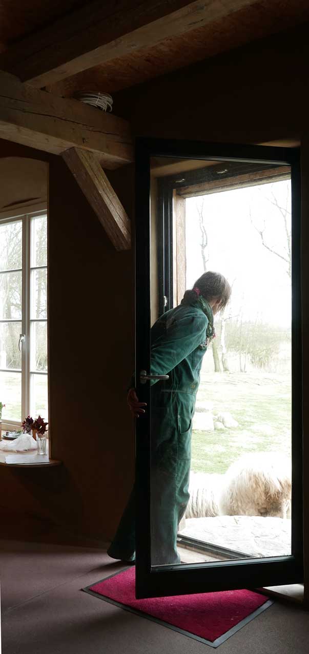 sie belehrt die Leute nicht, die zu ihr kommen, eher führt, leitet zu sich. An den Dingen, Farben. Nach den neuen Erefahrungen nun am Haus selbst.