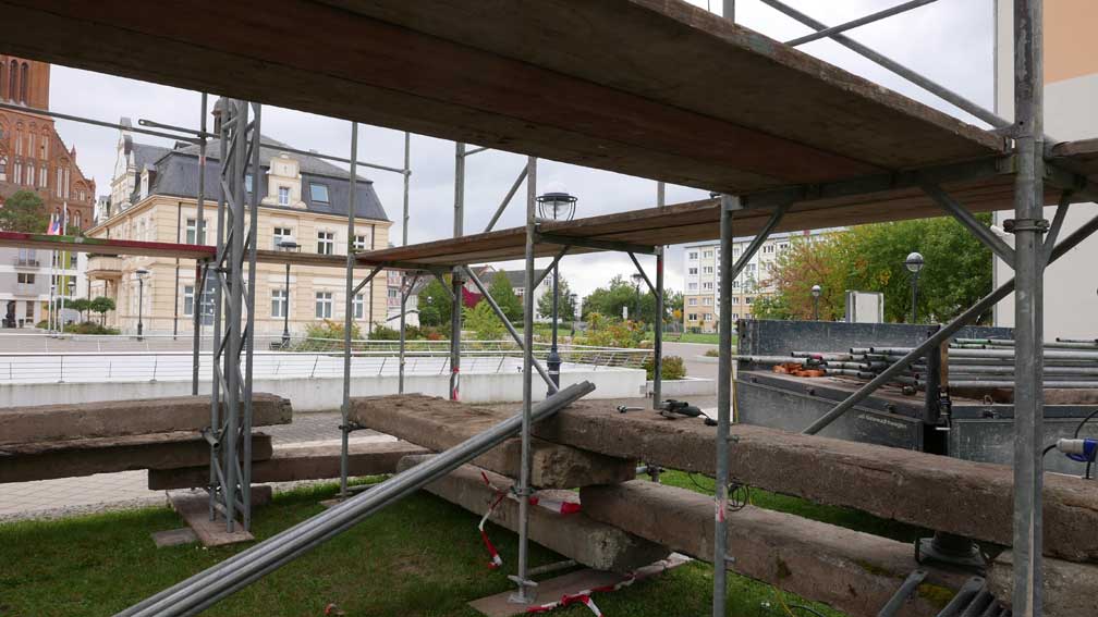und wir versuchen nochmal das nich fehlende Haus am Markt wieder zu markieren, dass der Platz noch mal entsteht, auch da.