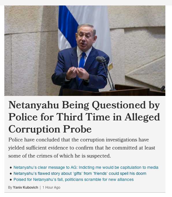 Netanyahu wird von der Polizei zum dritten Mal in angeblicher Korruptionssonde befragt