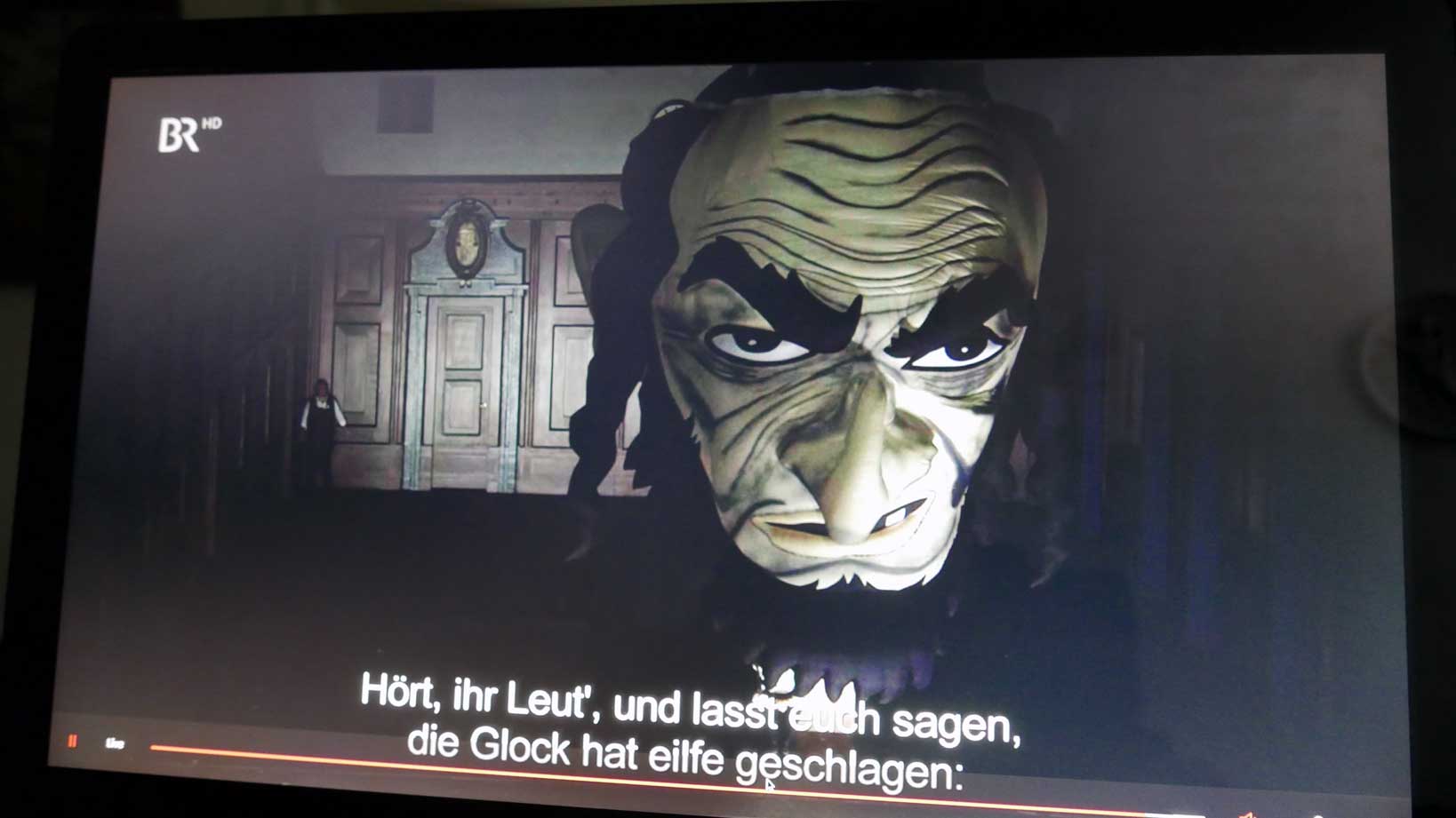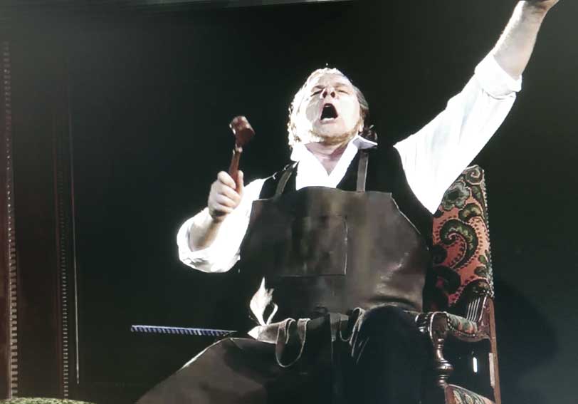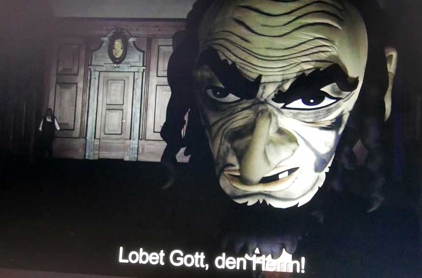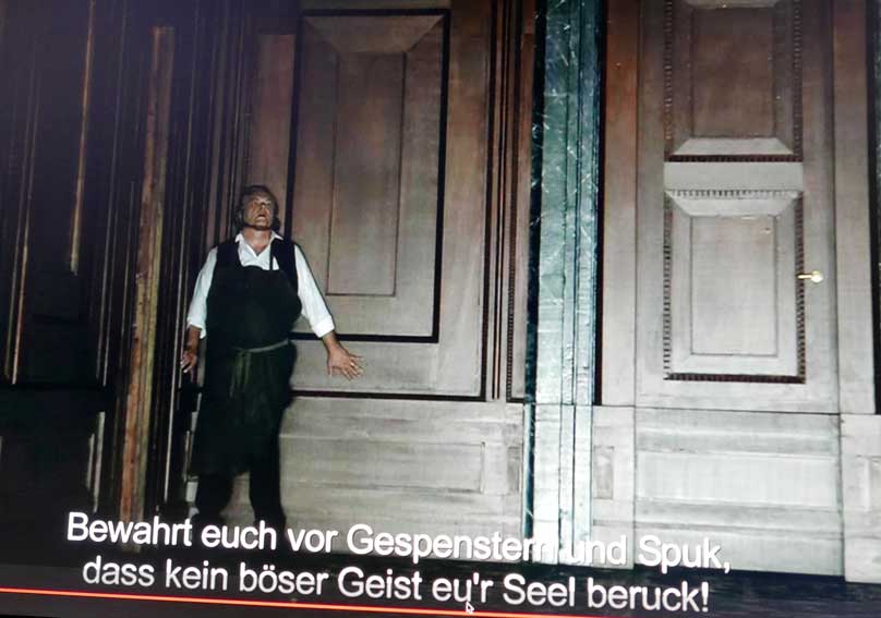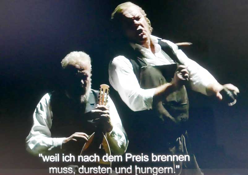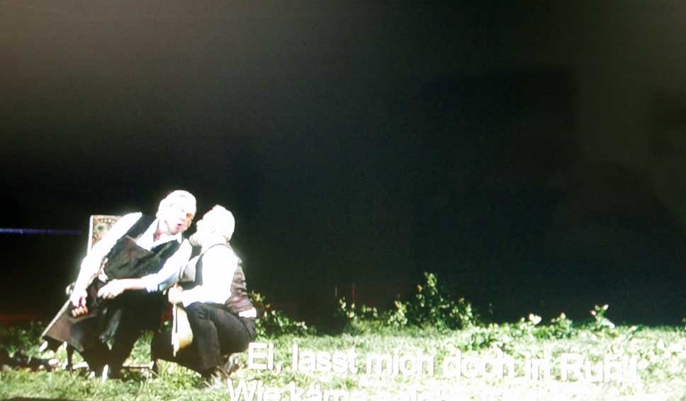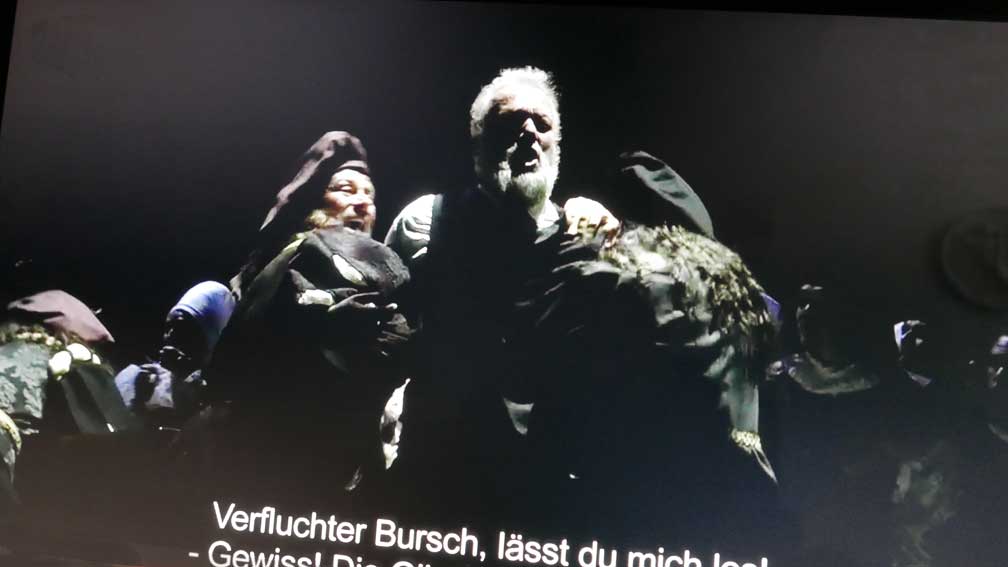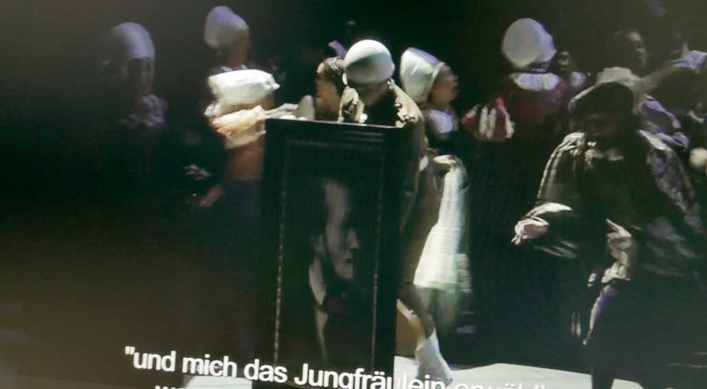 das geht solange mit Witz und immer beschädigtem Ton des Beckmesser, bis die Leute aufwachen und toben, zu fragen, was da los ist.