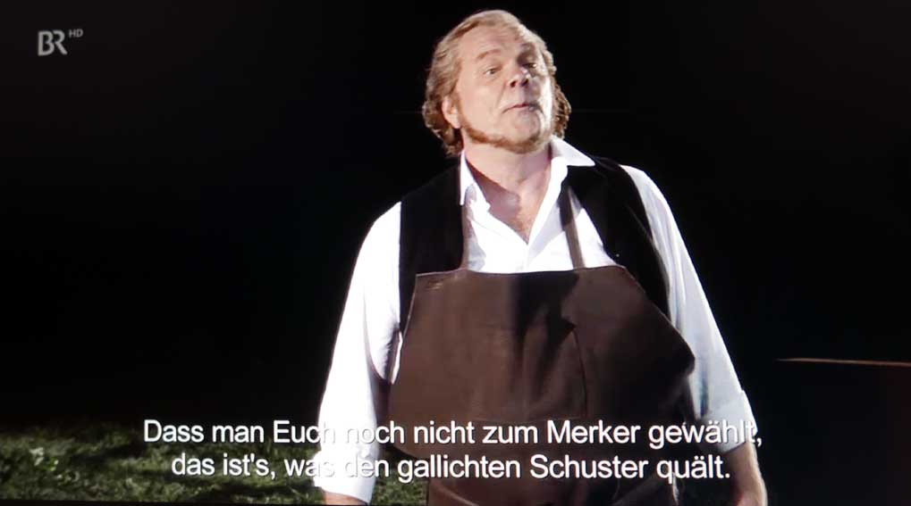 Die von Wagner eingeführten jüdischen Aspekte in der Figur dieses Beckmesser und durch Traditionen auf der Bühne markierte Eigenschaften werden hier in der Gleichrangigkeit der Figuren ausgewogen. Die Musik erlaubt einen interessanten Dialog auf hoher Ebene. Von der Regie klug aufgeniommen.