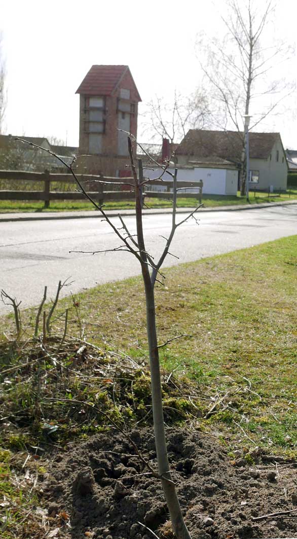 Ihr zu Ehren ein Baum an windiger Ecke nun, gut bewacht von der Kamera aus dem Transformationshäuschen gegenüber. Von Zäunen umgeben und viel Elend rundum.