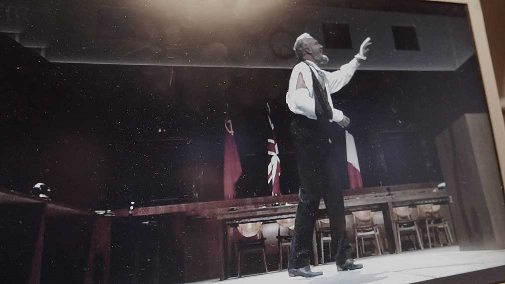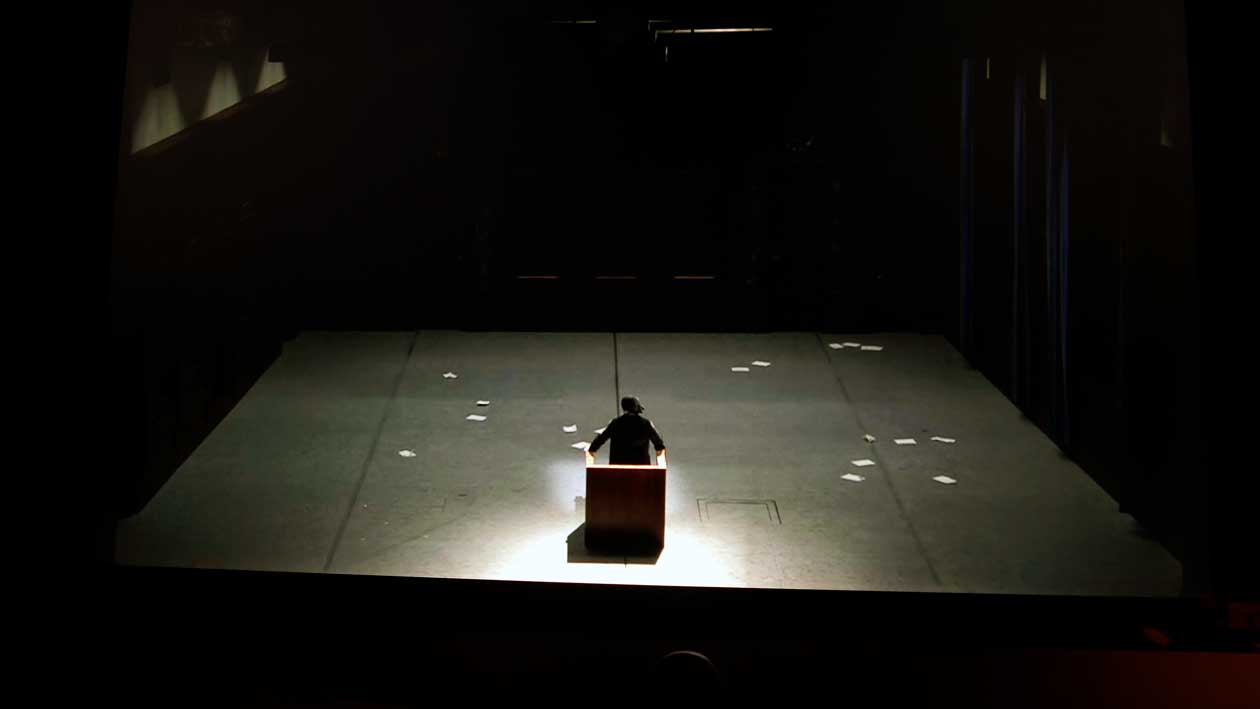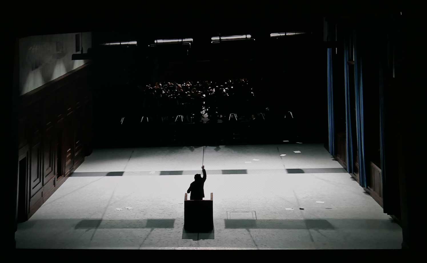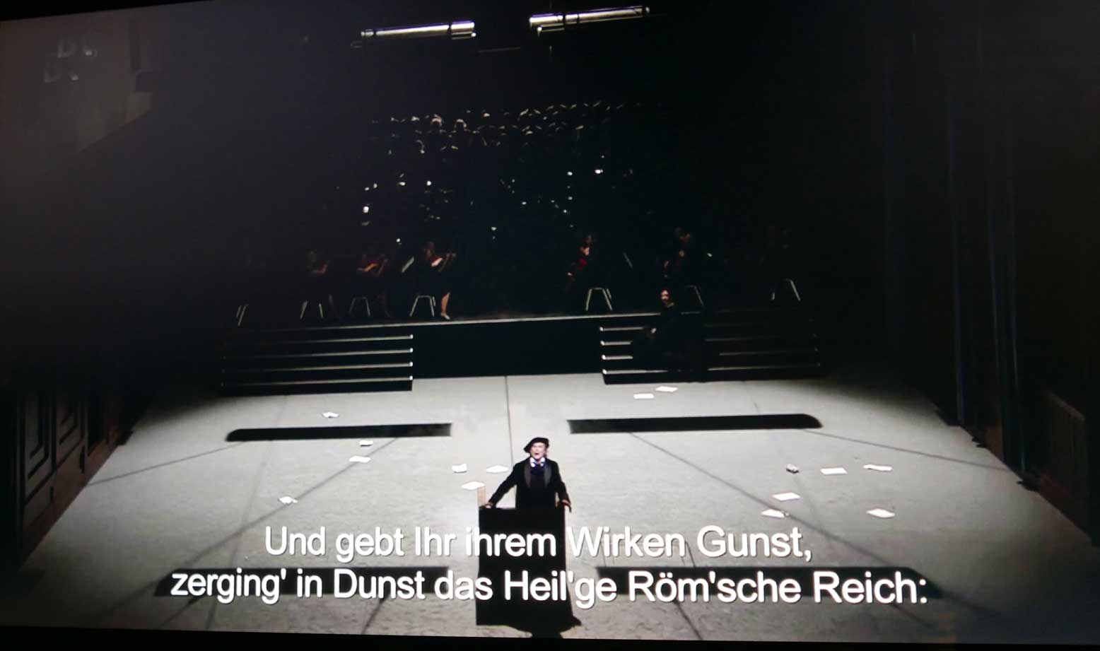 Als am Ende die Bühne leergeräumt ist kommt die Botschaft wie im Bunker des letzten Lichteinfalls aus dem Nürnberg des Untergangs eines verlorenen Reichs